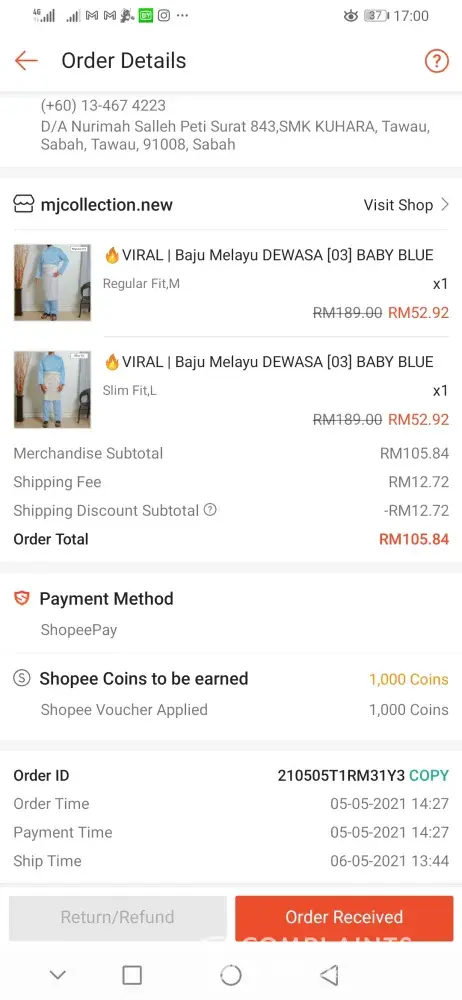 13 May - I got a call at 6:04PM from J&T crew member saying that my parcel has been bitten by rat and asked me to do a self collect at J&T Express Georgetown 309. (I decided to come on 17/18 May since I am having Eid Mubarak's leave.)