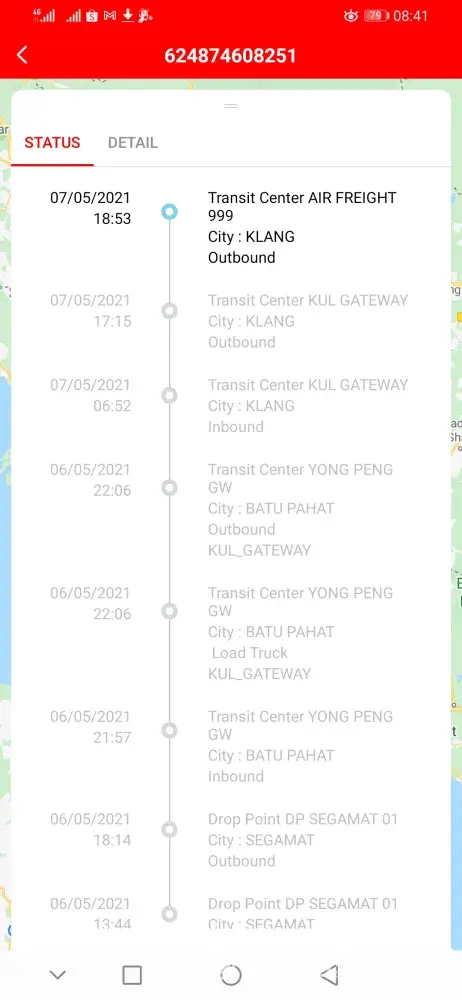 I went to J&T Express to courier a parcel from Selangor to Sarawak on the 5th May 2021. Next day I check the status it shows the parcel is at Klang (6th May 2021) already. Then the update keep remaining on 6th May 2021 until today.