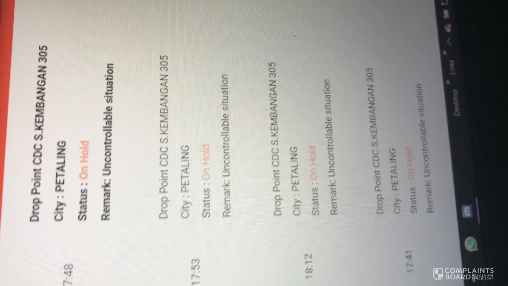 One of them has the status of uncontrollable situation, while the others are on hold. It is very rare to wait for this long as usually, J&T is quite fast in delivering parcels once it has arrived CDC KUCHING 301. The parcels will be send the next day once it arrived in the centre