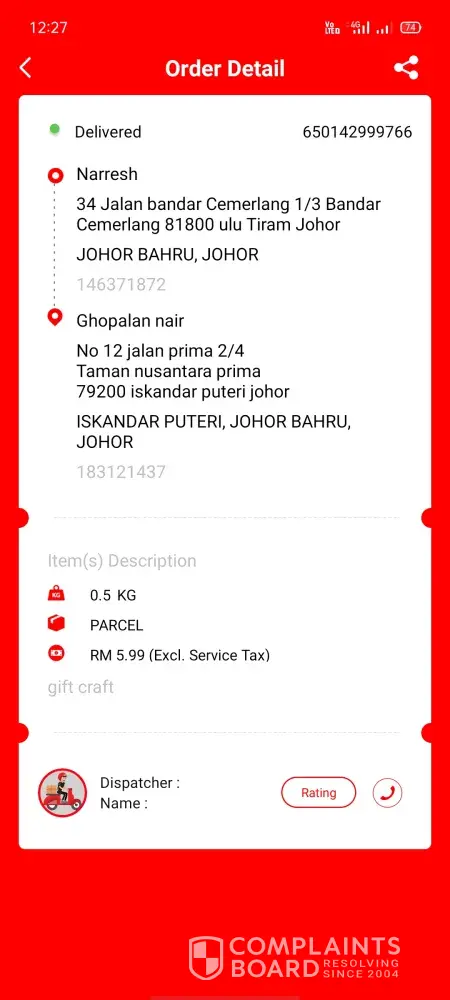 The guy who delivered parcel to my husband house, at Sri Sinar, yesterday (28 Apr 2021) is really rude. He blamed my husband for not attending his call. It's working time and we can't simply attend the call during working hours. And i seriously disappointed with your service provided as this doesn't show your professionalism at all! I'm really regretting of choosing your service. i