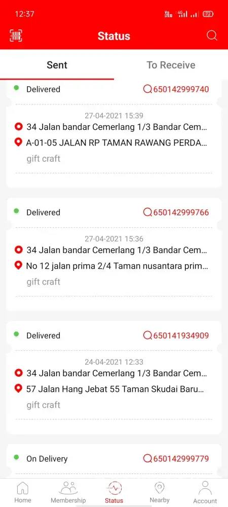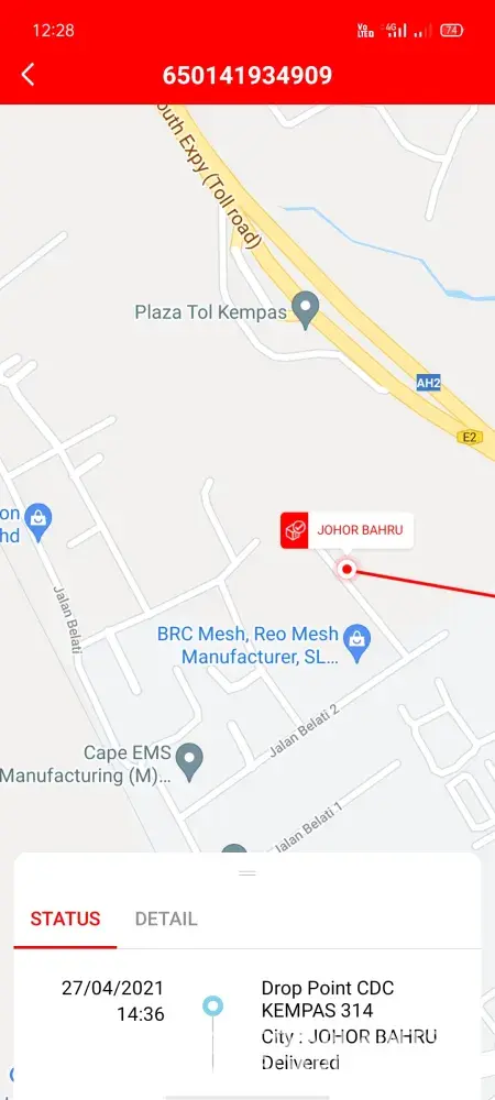 I was in Jalan Perintis, the parcel send at Jalan Pengacara.
