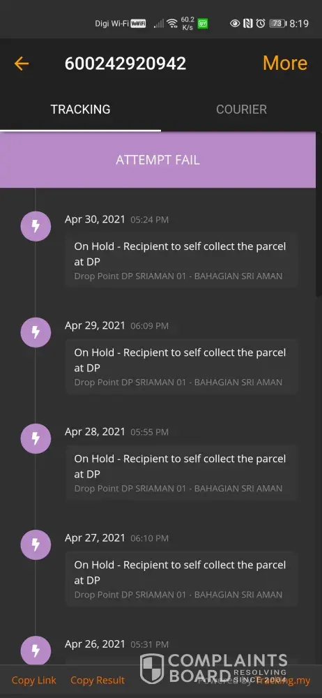 My parcel still stuck in klang since 22april 50140214988