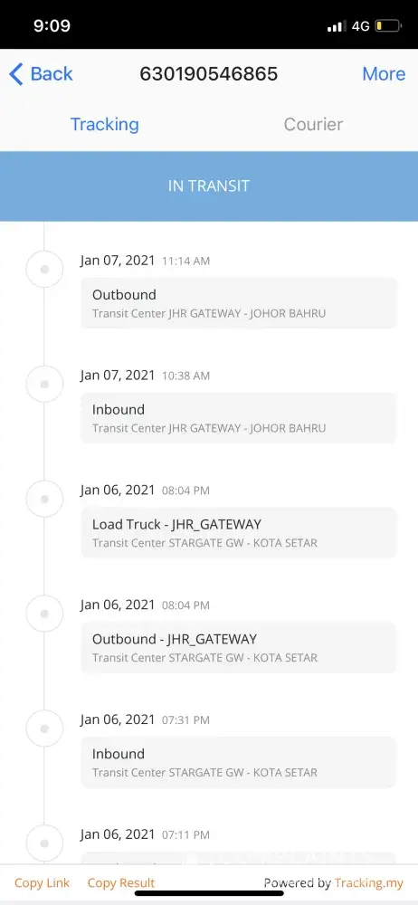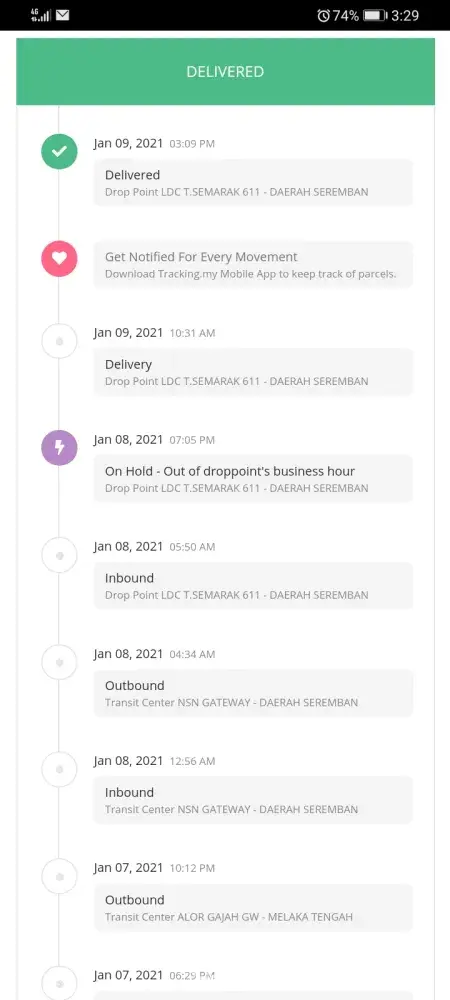 Later (29Dec2020 around 2100hrs), I checked (chat online with J&T Express Live Agent - Taufiq) with J&T Express online via https://www.jtexpress.my/- on my item's status.