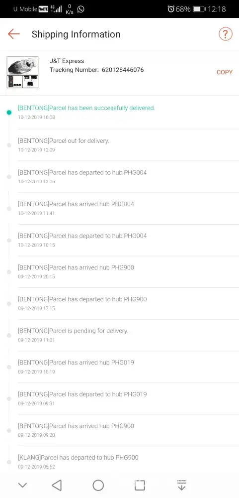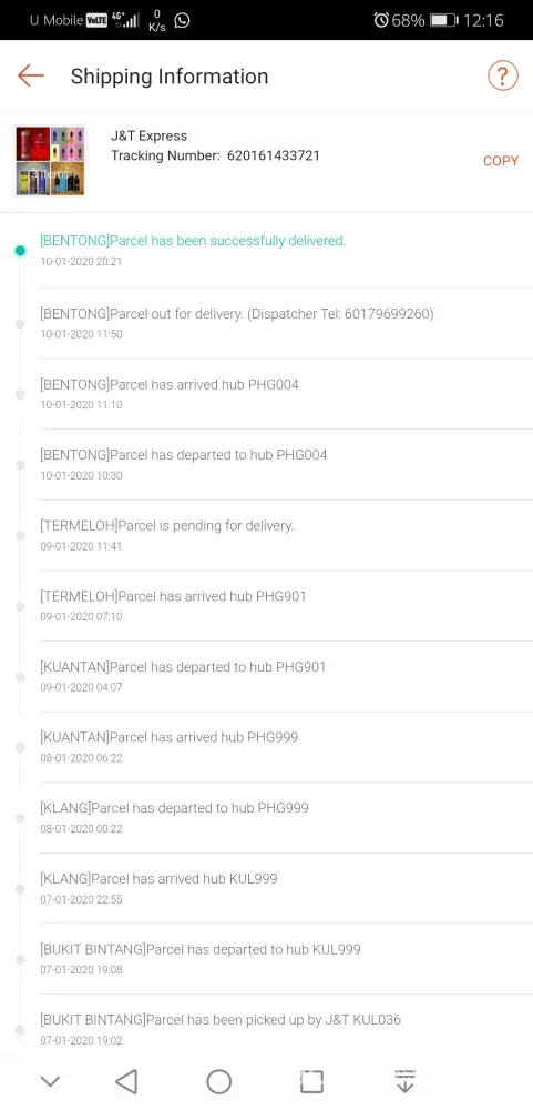 J&t what is you job? bawa barang asik salah negeri hantar, call customer services told that wrong place parcel issue after that, sama juga parcel tk jalan jalan. (dh bhk kali call customer service:jawab sini tk ada record) Bukan sekali sekale jadi gini, ni dh byk kali salah parcel ke negeri lain! Bila customer complain, tk puas hati pula. Tapi kerja macam hapa pun tk taw. Cuba tengok record tracking lama yg saya upload, nk berapa kali jadi issue yg sama?