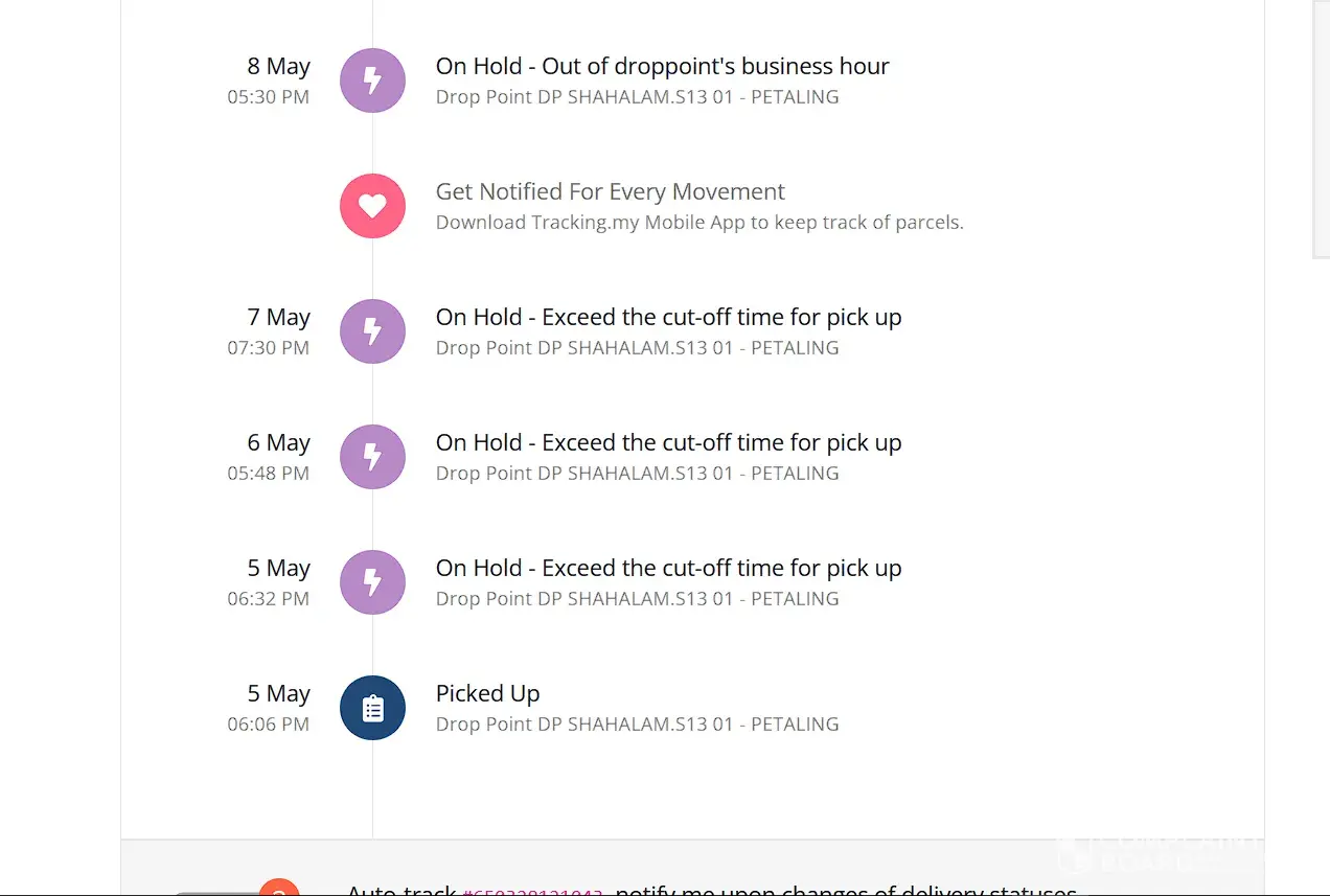 4days and still On Hold, send on 5may and the reason for on hold is Exceed the cut-off time for pick up.. seriously?