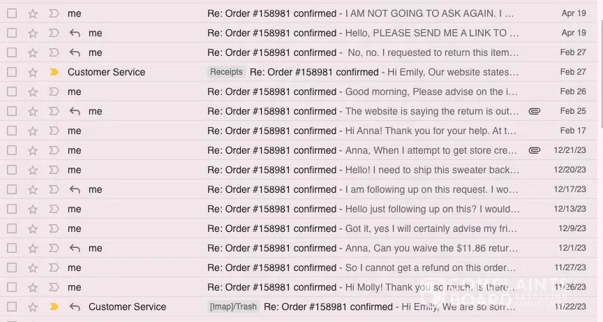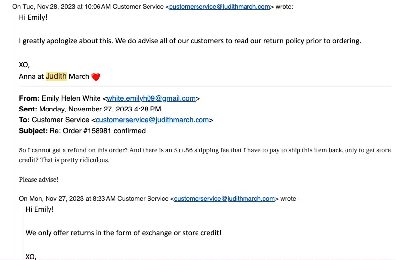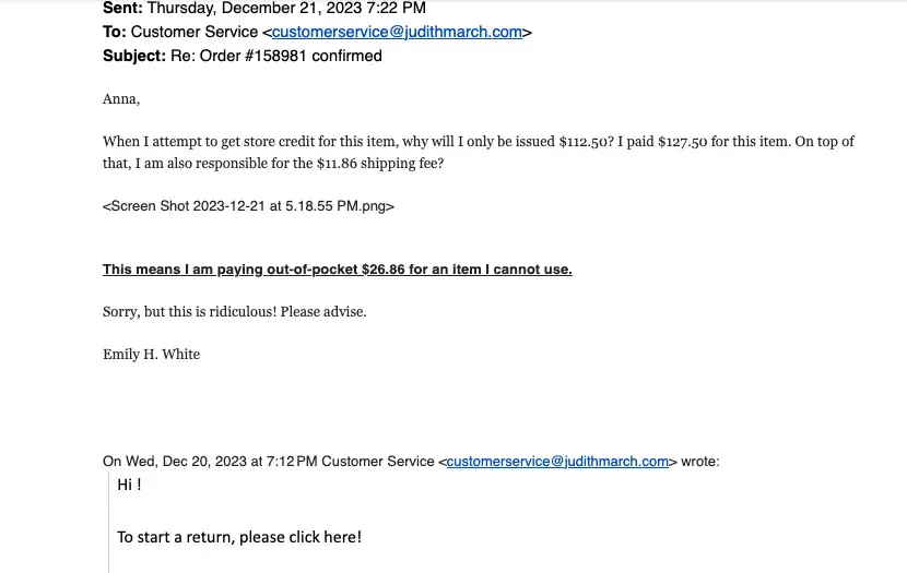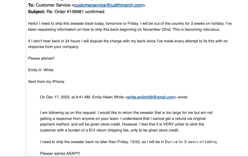 Desired outcome: A response would have worked but now a full refund