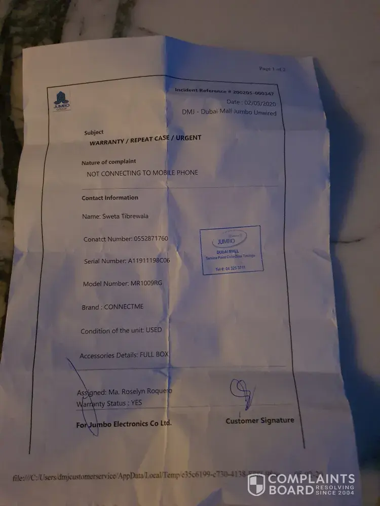Jumbo Electronics complaints: history and resolution overview