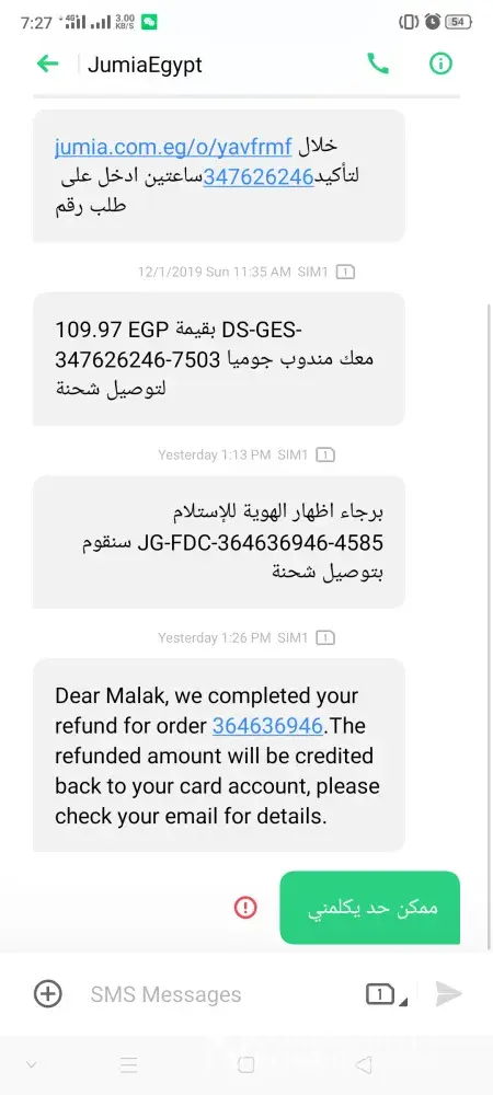 I made a payment via jumiapay and then I was given an order number but was later called that my order has been cancelled that my refund will be done within a range of 32hrs ... And here we are still nothing in my account I called several times but no official worker picked just their voicemail