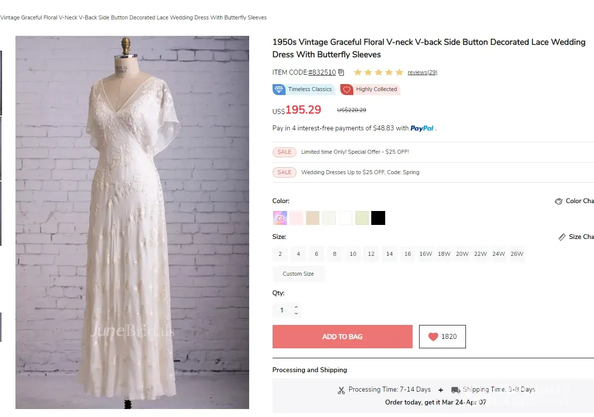 Junebridals.com appears to have online shopping features, it's important to know that the platform supports an extensive range of payment methods, making it convenient and easy to complete your transaction. The payment procedure on the website is also relatively simple and straightforward, ensuring a smooth and hassle-free experience for buyers.