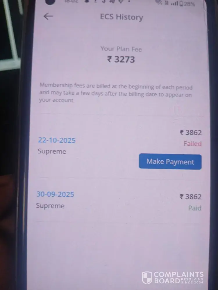 Read full complaintI am complaining about Unnecessary ECS Transaction done at the end of month on 22nd October, 2025