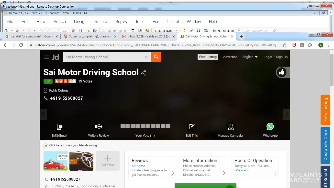 We registered your complaint on 14th Nov 2019 itself. We would like to inform you, on the basis of your complaint we have deactivated the listing of "Sai Vinayaka Motor Driving School" and stopped their business. They will be unable to use our services until your complaint is resolved/addressed.
