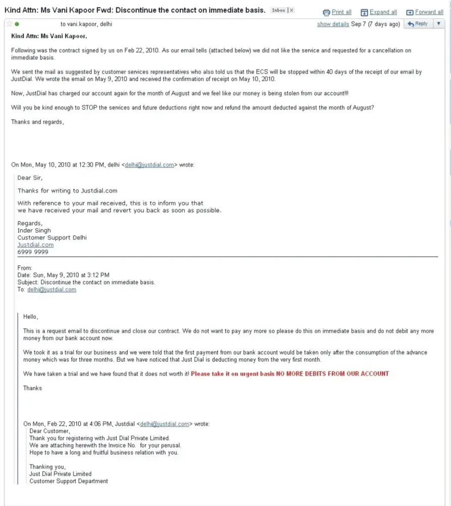 In the case of my relative's car rental business' JustDial contract. JustDial IS STEALING MONEY FROM MY BANK ACCOUNT!