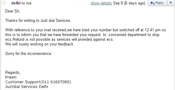 Just Dial - made promise which they did not keep