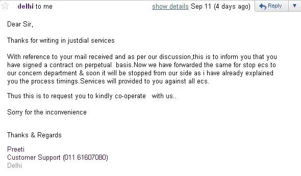This is regarding the wrong commitment and cheating in renewal of our just dial services.