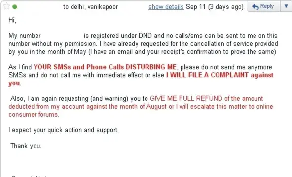 Now after looking at the response of your customer care services I have decided not to avail the services of this type of Company, so you are requested to refund the entire amount of Rs. 4964/- paid to you vide Ch. No. 964179, Dated: 15.04.2011., and discontinue the services with immediate effect.