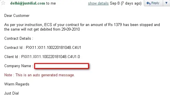 2. I can stop the service any time by calling JustDial Customer Support and the ECS will be stopped immediately.
