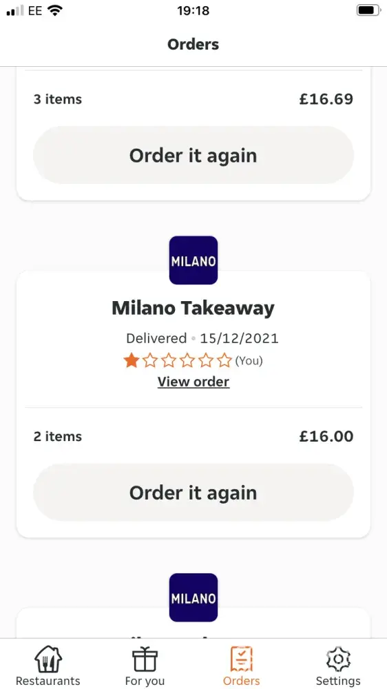 Milano takeaway & just eat