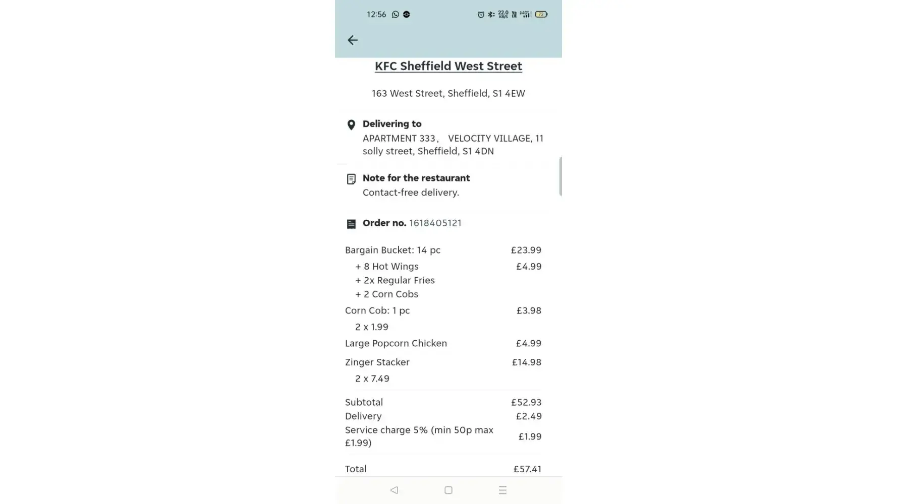 I ordered a delivery a week ago with Just Eat for KFC. My delivery did not turn up. I contacted KFC who told me the driver had stolen the food and to post a review and they would do the same and I would get my money back. I.E i followed their complaints policy to contact the restaurant. I waited for this to happen and instead got an email for 15% discount. When I immediately complained to Just eat, they advised that they would not refund me because it was outside of 72 hours from the original date of delivery and was against their terms and conditions. However I had followed their complaints procedure by contacting the restaurant who had confirmed that i would get my money back and by the time Just Eat emailed me with 15% it was outside the 72 hours!