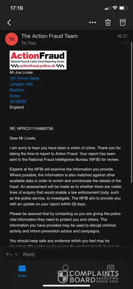 Desired outcome: Refund of the fraudulent transaction £31.86