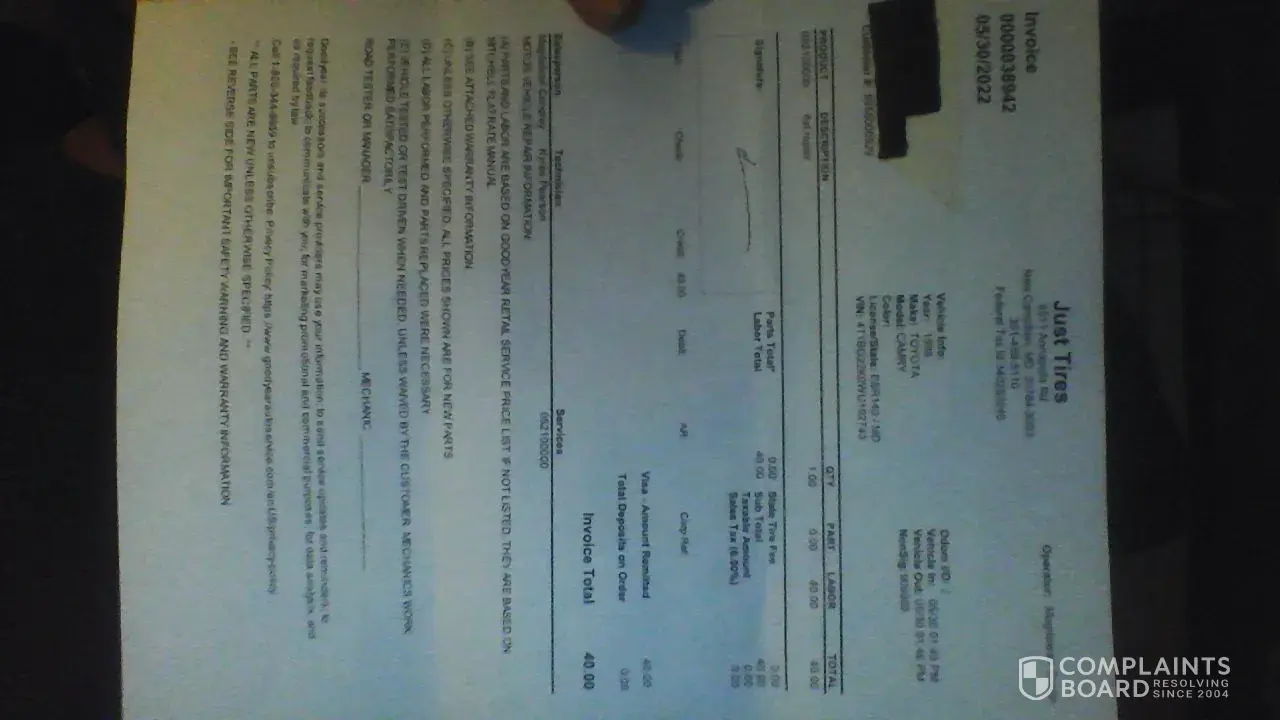 Just Tires’s earns a 1.5-star rating from 1 reviews and 30 complaints, showing that the majority of customers are dissatisfied with tire purchases and services.