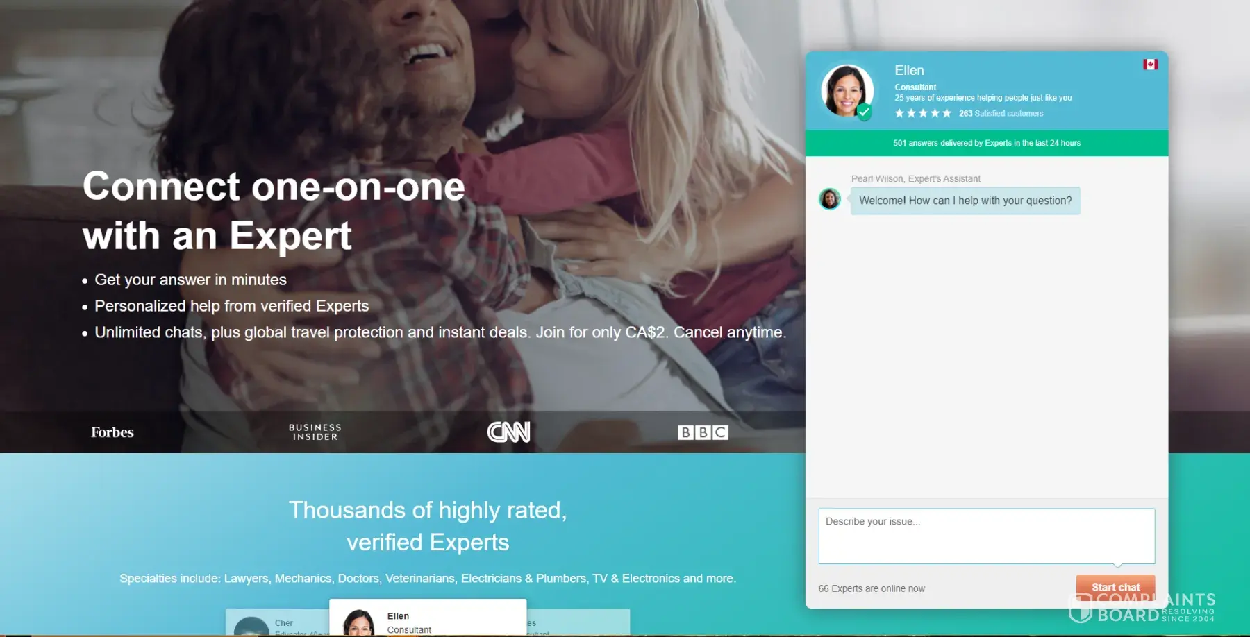 JustAnswer claims to have qualified and experienced experts available to answer users' questions and provide advice.