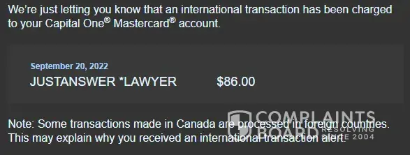 JustAnswer Unauthorized transaction charged to my visa card -just answer