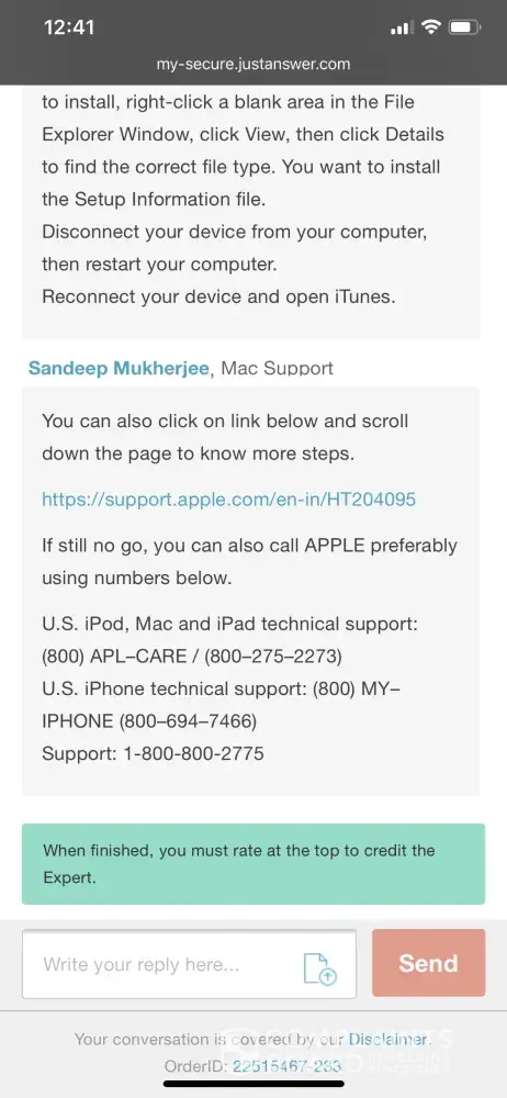 The "expert" who was online with me was Sandeep Mukherjee ( stated to be a Mac Support Specialist.