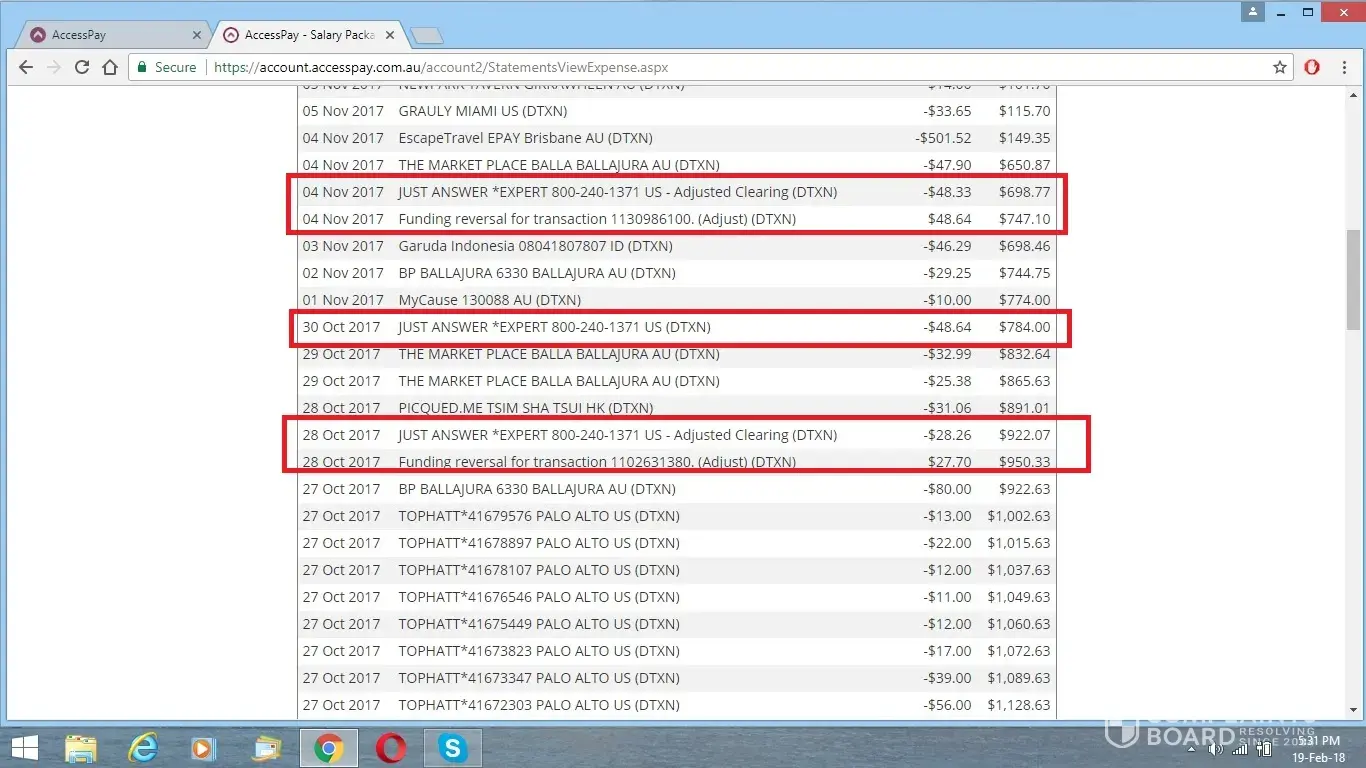 Please see attached credit card statements. They owe me a total of $197.00 AUD.