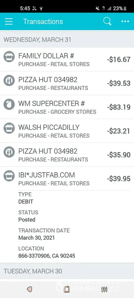 I used this site one time before christmas 2020. I started following justfab when I came across the site on facebook. March 11th 2021 I have a charge of 39.95. I am positive I did not make this transaction because when I used them previously I ordered 5 pair of shoes all the shoes were to big for my daughter. I need my money back ASAP. Please! And thank you!