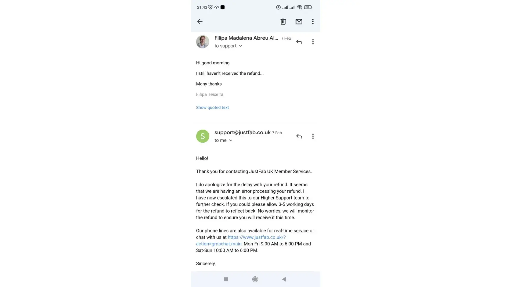 And to confirm the conversation we had today - I purchased some shoes from your company last 21 July 2013. I checked my online banking account today and noticed that JustFab have been taking ?35 per month out of my account since then (total ?420).