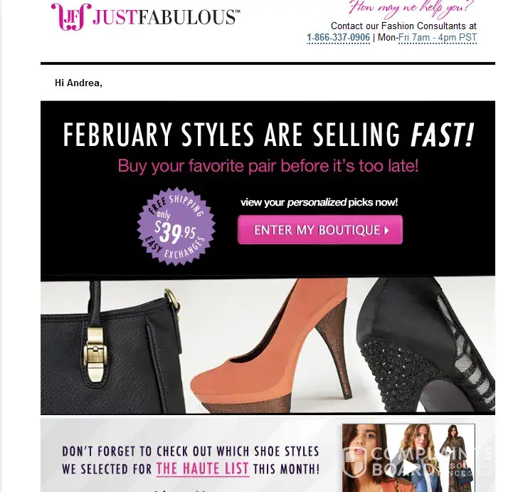 There are thousands of complaints against JustFab.com and I now wish I had researched them more carefully before buying from them.