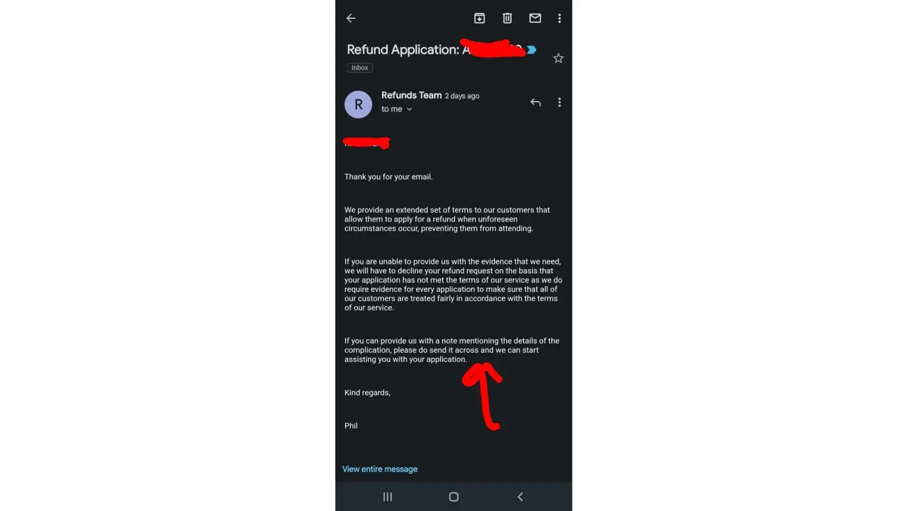 Desired outcome: refund me