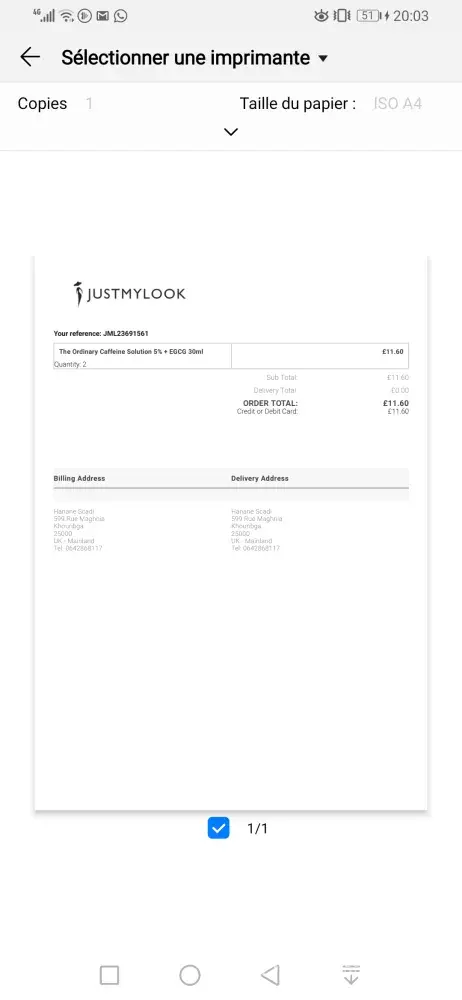 I contacted Just My Look on 14 March to advise that it had not been delivered and they provided a Royal Mail tracking number which shows that it had been delivered on 9 March.