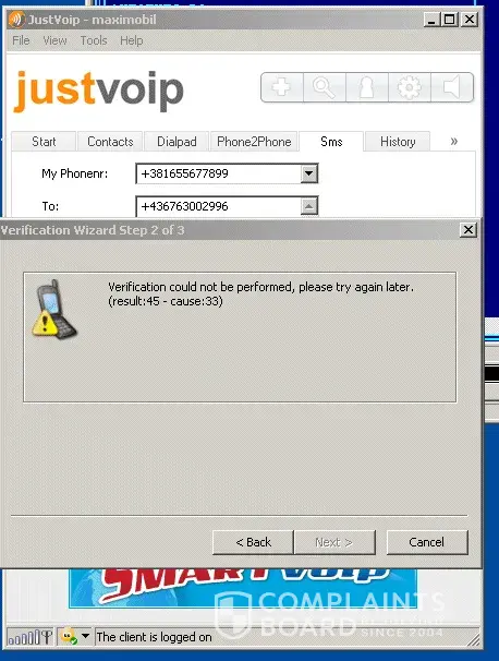 I have my justvoip account and an account credit of 10.02 euro and 353 free days left. But when I try to make a call, it says, "The other party ended the call due to an unknown error." I sent e-mail complaint to the Justvoip service team, but the error is not corrected. It smells bad.