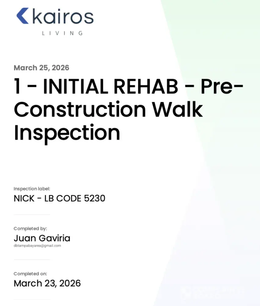 Their so-called “move-out inspection†is actually labeled “1 – INITIAL REHAB – Pre-Construction Walk Inspection†and was completed by a local scam artist that they contract with named Juan Guaviria on March 23, 2026 — three days after we moved out. In their April 1 response letter they claimed the home was in “pristine, new condition upon move-in†and that the wall smudges were “beyond routine living†and “highly concentrated on a single wall†which exceeds normal wear and tear. Their own Exhibit A photos (full of shadows, duplicates, poor lighting, and mislabeled rooms) only further weakened their argument — our clear, well-lit move-out photos easily disprove it.