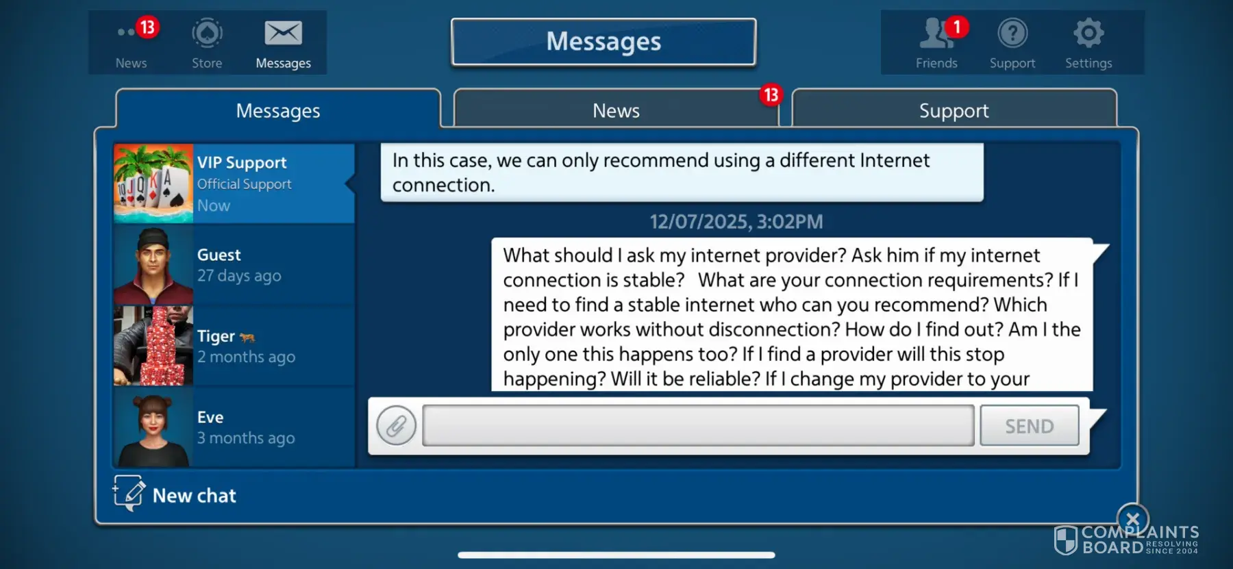 I’ve been playing KAMA games since 2019. I’ve noticed bad connection to the servers. I am in tier 7 and suppose to get VIP support. Most of the time when I contact the support team I get an automated message saying thank you for contacting the support team. Today and other times I get no message. I notice that because I had over 3billion chips and my...