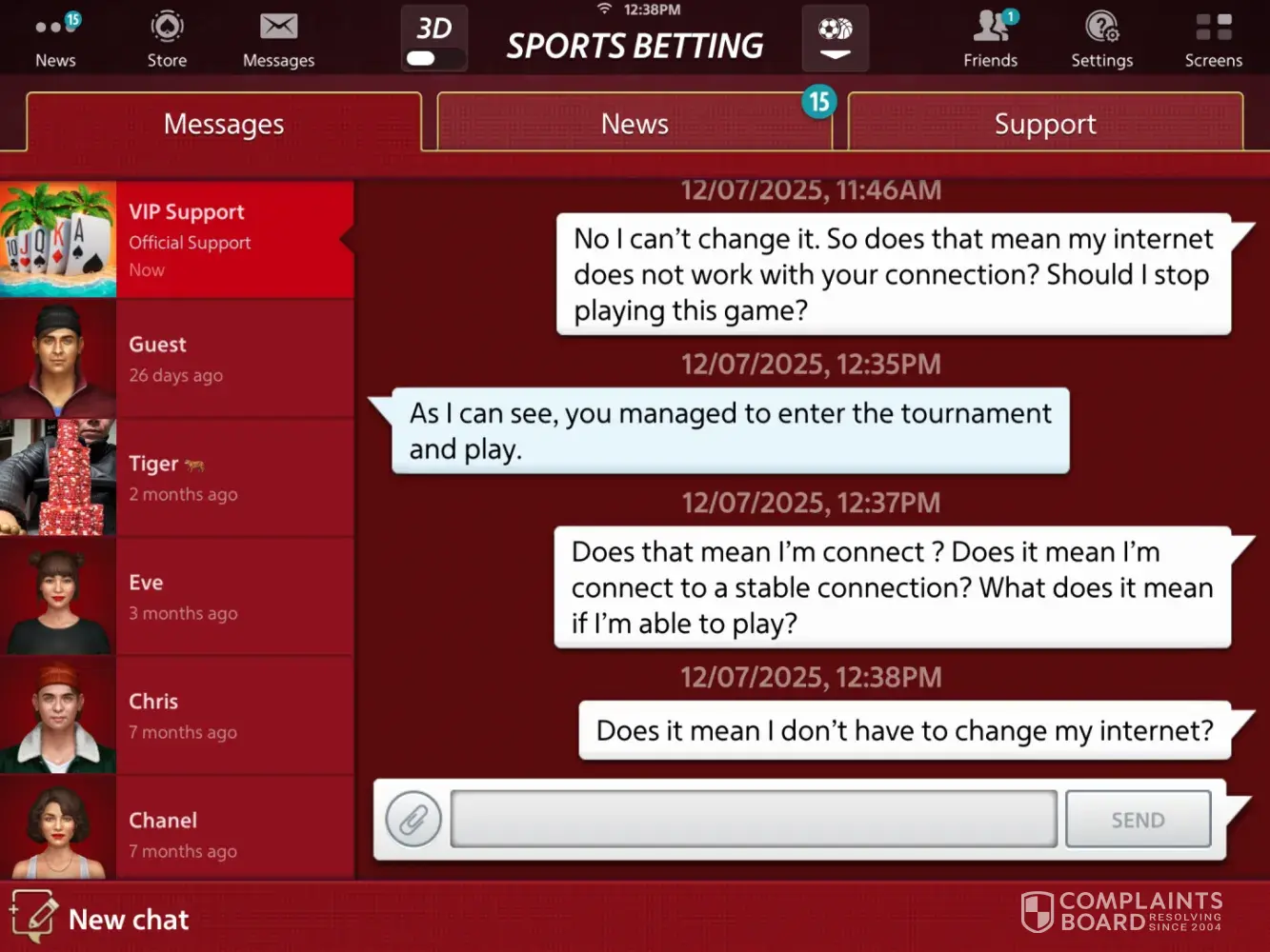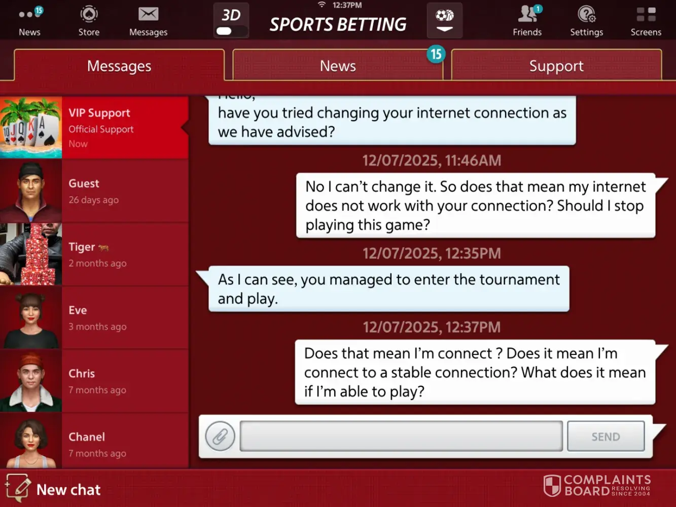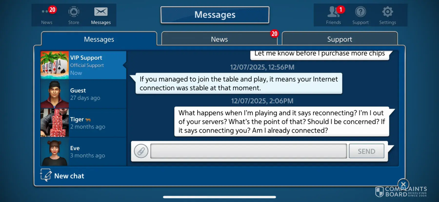 I have been a member for many years since 2011. I had recently purchased couple hundred million chips. I have been playing on this app every day few hours. I have made it to 2.8billion in chips. I only have (2) friends on the app. It’s part of the game when you play you don’t get to win every hand so you can bluff and try your luck to see if the other...