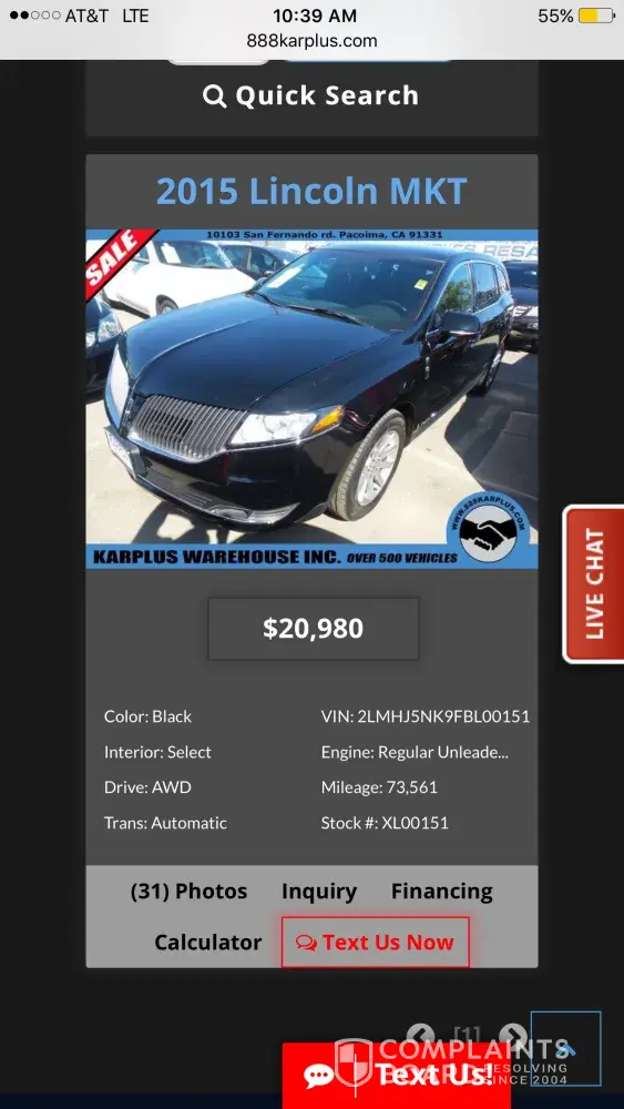 She began looking for a car online and somehow Kar Plus Warehouse got a hold of her information, after that they proceeded call her a nonstop multiple times a day, added her as a friend and messaged her on social networking sites and sent her continuous emails. In these phone calls and messages they promised her the world, regardless of her credit they would take car of her and she would be able to get a nice car for a reasonable price.