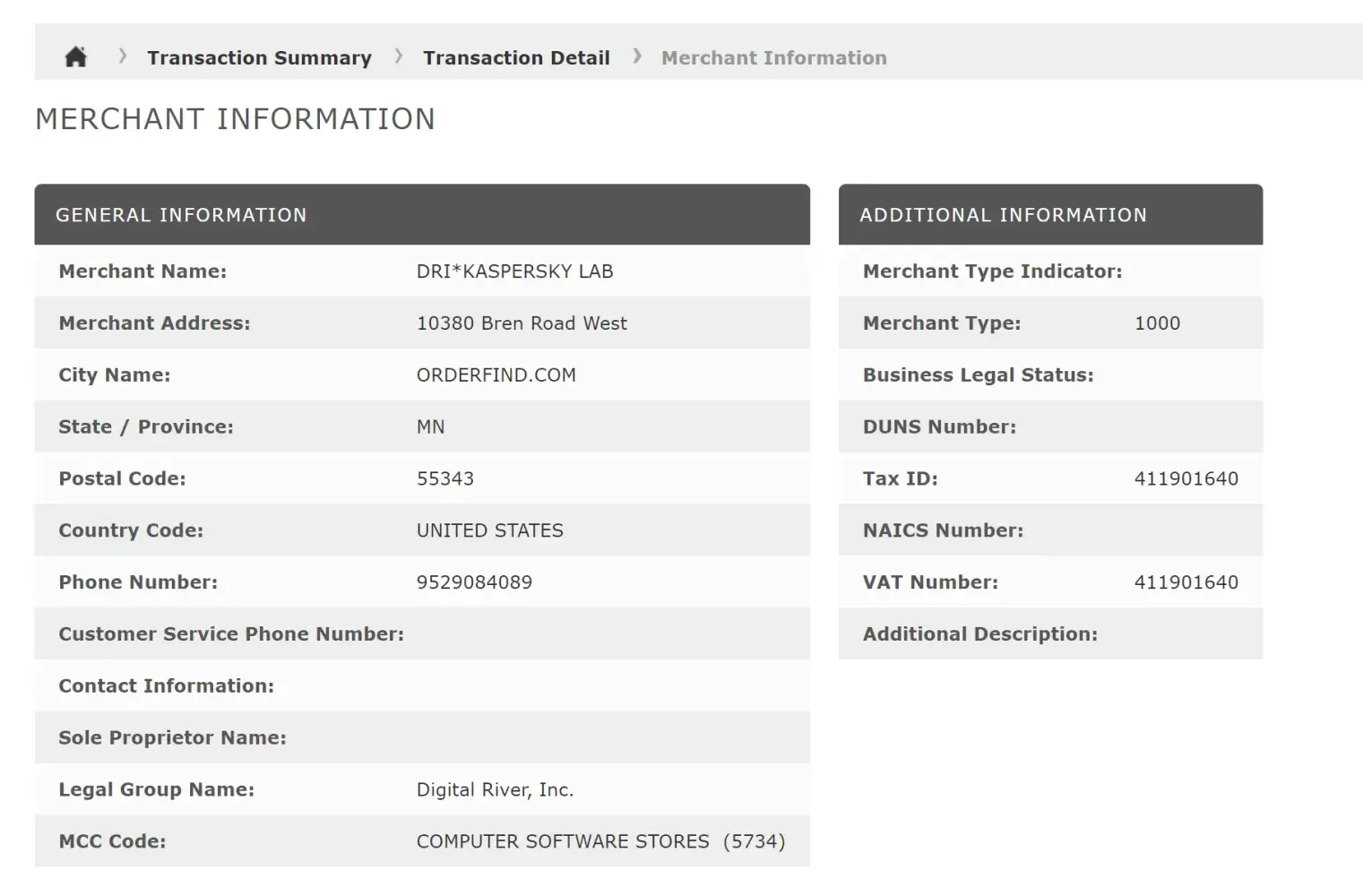Preauth dri*kaspersky la orderfind.com mn