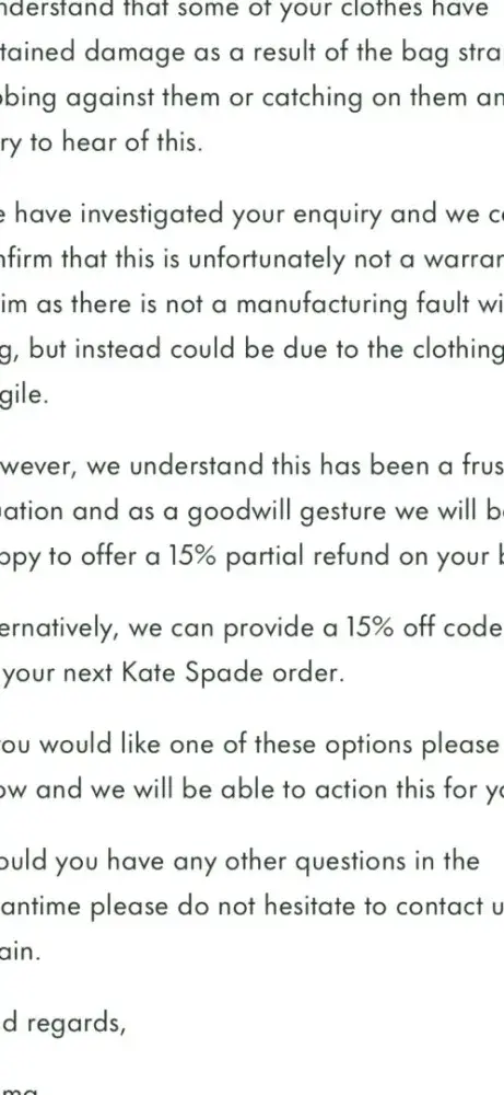 Feeling super disappointed for Kate Spade customer services.