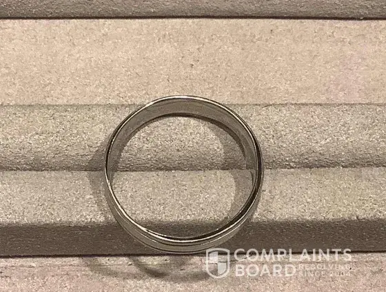 She then told us that there had been issues with past management in terms of keeping up with paperwork, but that she was taking care of that and we had nothing to worry about. We had always enjoyed our visits with the previous manager, who treated us very well (as one would expect in a retail environment.) I told my husband that he should have his band re-plated and brushed. He took it off and handed it to Kathy, noting that it was out of round and asking if it could be re-rounded at the shop as well. We had had it plated, brushed and rounded in March 2021, so assumed it was a routine request. Kathy placed the ring on a steel sizing guide and began to tap on it with a small wooden mallet. After doing that for a minute or two, she filled out the paperwork to send it in.