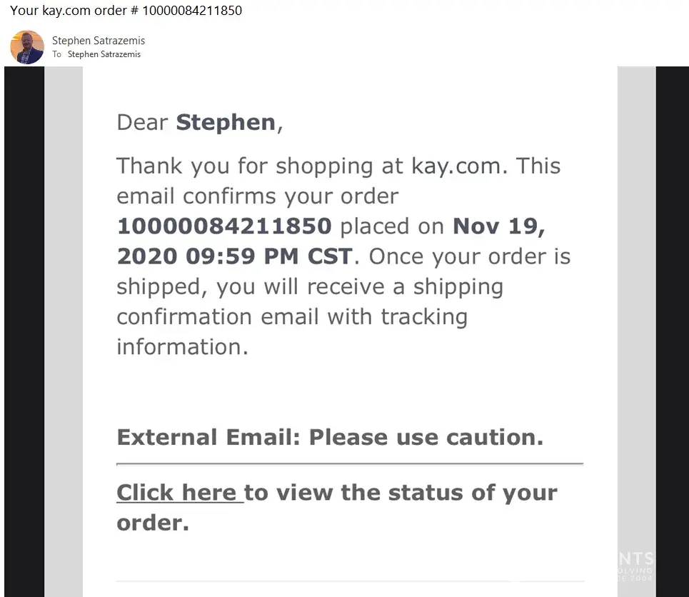 I ordered a nice new Diamond Bracelet for my Fiance as I do a lot from Kay's. I ordered it on 11/19/2020. Order confirmation # [protected]