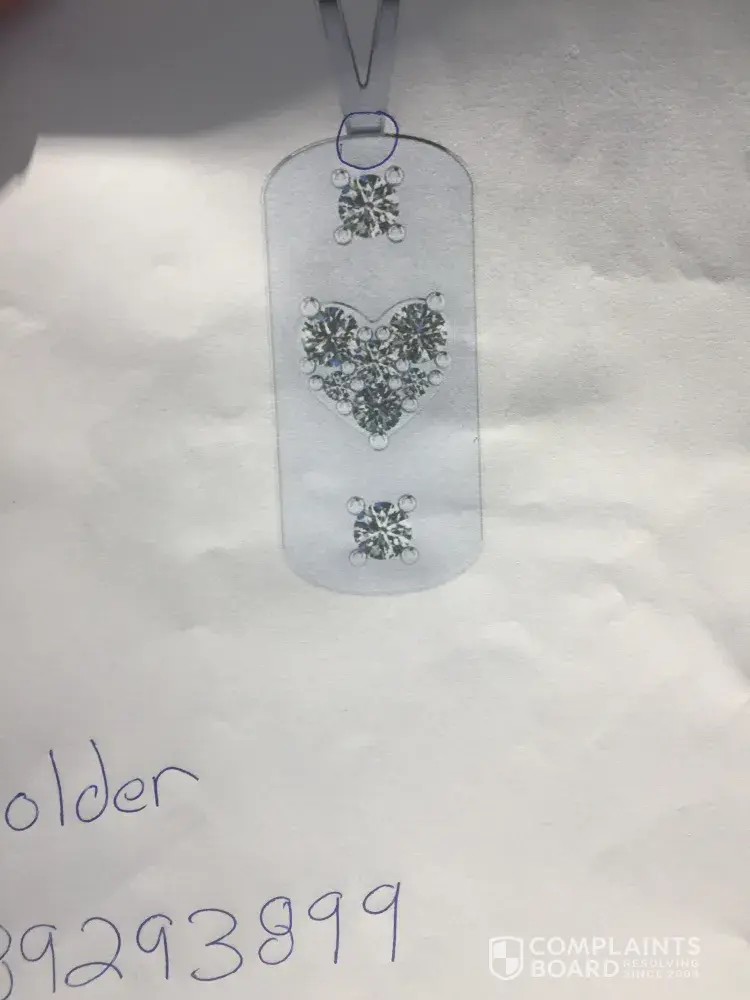 I am allergic to zinc apparently my husband had purchased me diamond earings also my promise ring from kays in rockingham nc. He went to the store in town with picture now (a picture!!) of what he wanted the pendent for me being made and this is we got the first time of what they were making for me remind you this is being custom made for me!! My hubby wa...