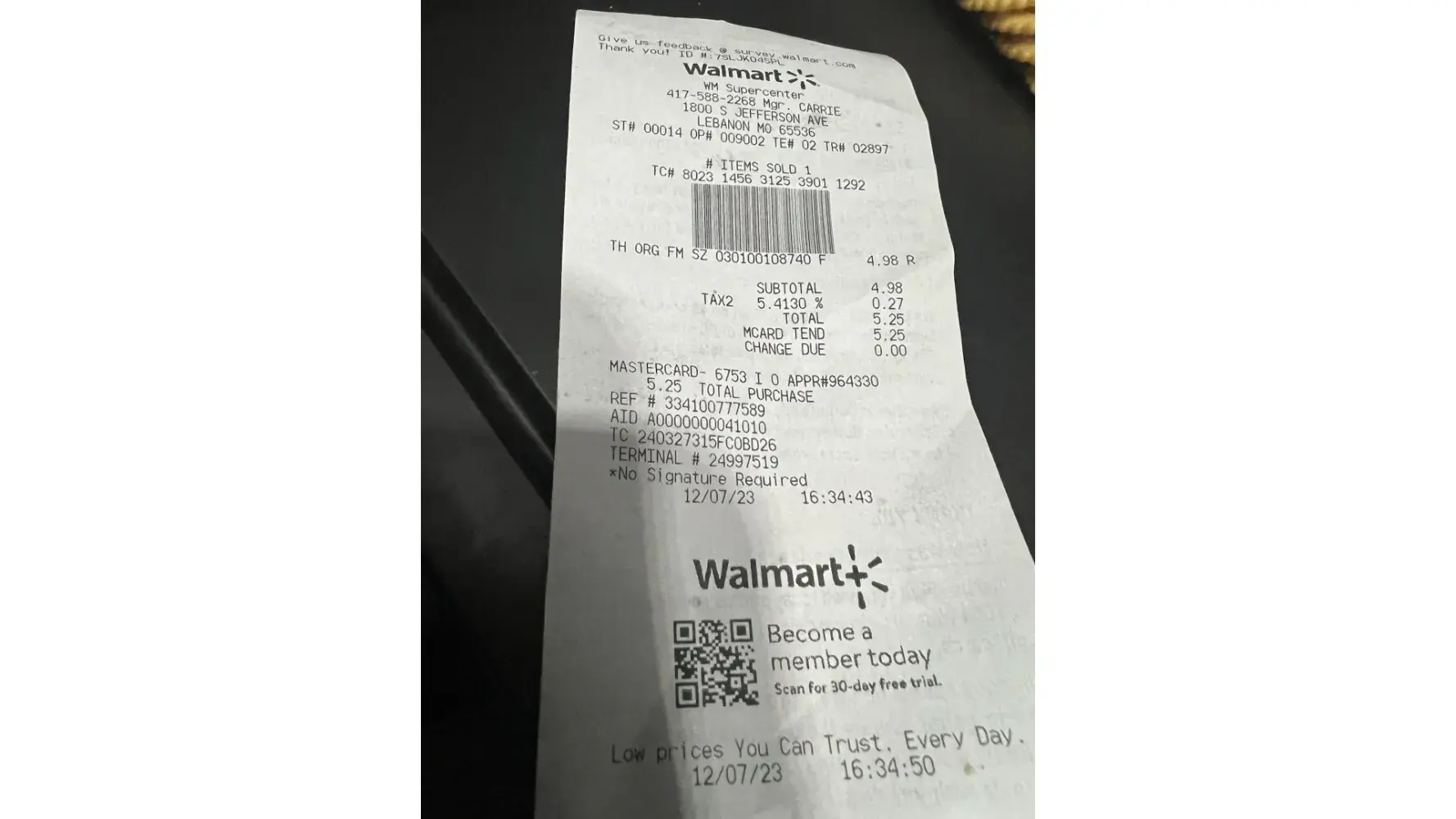 Claimed loss: $6.99