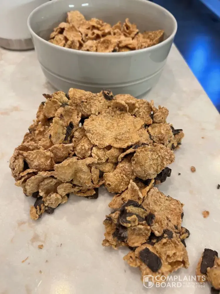We buy your cereal all the time. This morning my daughter went to pour her bowl of her favorite Chocolate Special K and a huge giant clump of stuck together cereal (see image). Just not the quality we are used to from your cereals. Wanted to let you know. I am a busy mom of two and work full time so I don't have enough time in the day to run back to the store and return the box of cereal. I am just going to toss it.