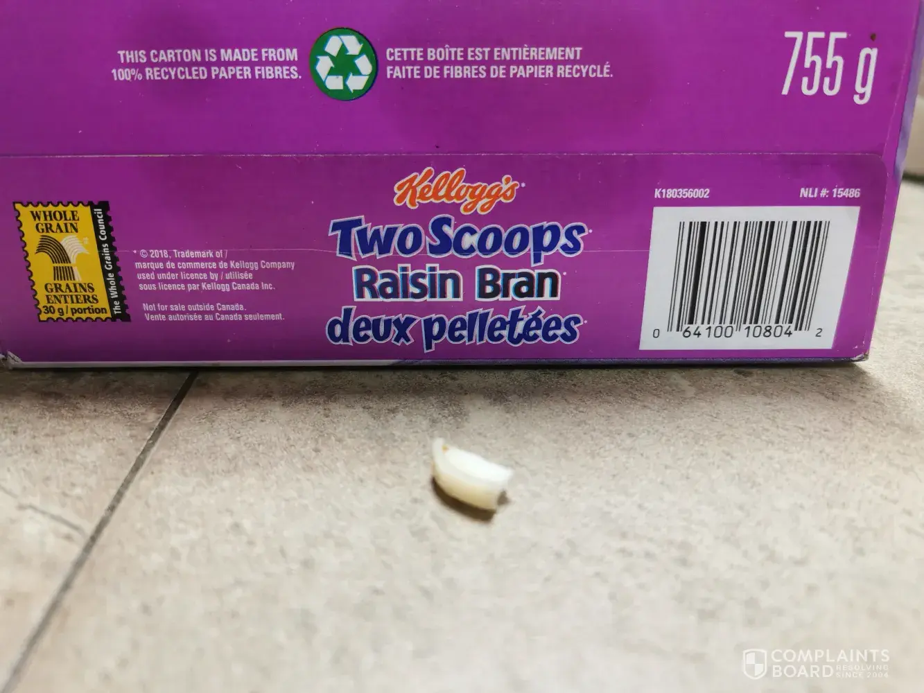 Made breakfast this morning and chewed into a piece of hard plastic. Looked like a bit off a plastic wheel. That had broken off, it stabbed my gum and it bled for awhile. I'd just opened the box and I decided it wasn't safe to keep. I've been eating raison ran everyday for the last 20 years and this is the only issue I've had so far. Thanks...