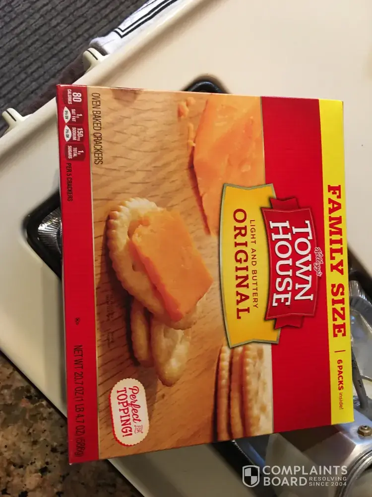 Our family has for years bought your Town House Crackers and have been very satisfied UNTIL now. I have bought 4 boxes of your family size Town House original crackers for our and every single box we have bought has had crackers that crumble the minute you take them out of the box. As you will see in the pictures they are already crumbling in the packages. Our grandson has autism and is very picky about what he eats. Your crackers are one he loves but now we get tears because they are just crumbs. I am so sick of buying a box and every single box is the same. I don't know whether it's the store or the way you package them but you need to be ashamed and Walmart needs to be ashamed to stock products like this on their shelves. Yes, I have complained. I want a decent product and I don't care how you get it here.