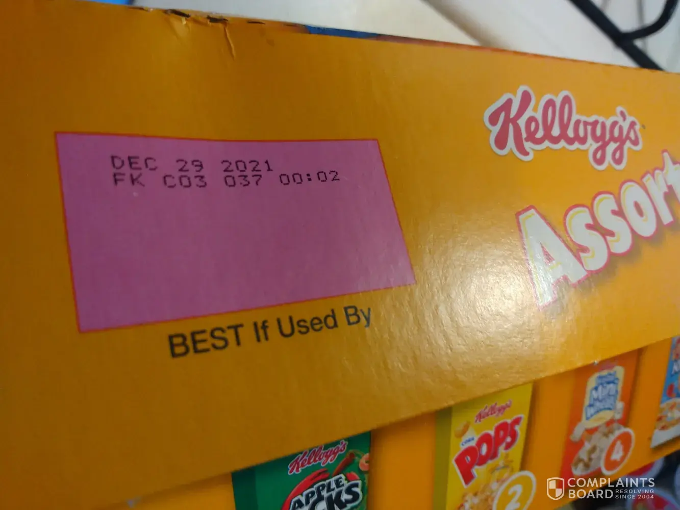 Not sure how you can resolve this as I won't be buying raisin bran anymore. Please let me know how you wish to resolve. I did not get any numbers off the box as had not really thought I would file complaint, however I did check date use by, and it was still in date.