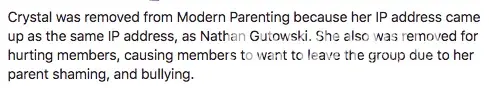https://www.facebook.com/nathan.gutowski.944 Here is Crystal Kells fake facebook profile under the name Nathan Gutowski. Performing a simple reverse image search of the profile image brings up many results including a link to Pinterest: https://www.pinterest.co.uk/pin/626352260649313208/ and the name Ryan Rodden. Perhaps this individual would be interested in knowing that Crystal Kells is using photos of him and his children to cyberbully people "anonymously" on a parenting group?