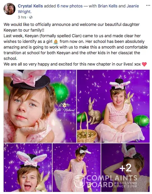 Crystal Kells of Kells' Natural Photography is a mental patient. She takes horrible photos of the grossest looking people then considers herself talented. She is a joke to the photography world. Half the time her photography is of her son dressed up like a little girl, as if that's not bad enough.. right? The rest of the time it's of transgendered weirdo...